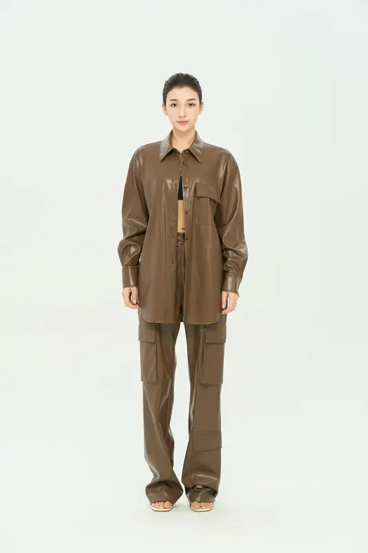 A retro women's apparel series that returns to the trend in the last two years, made of washed PU eco-leather. Washed PU has a soft handfeel, unique luster and texture, while combining the durability and water resistance of PU. The collection features vintage, punk, business, and pop styles, showing off the plasticity of eco-leather and making it suitable for all occasions. Finding the perfect balance between fashion and practicality, Sainty's development and innovation of using eco-leather instead of animal skins brings more possibilities for social responsibility, ethical and sustainability in fashion.