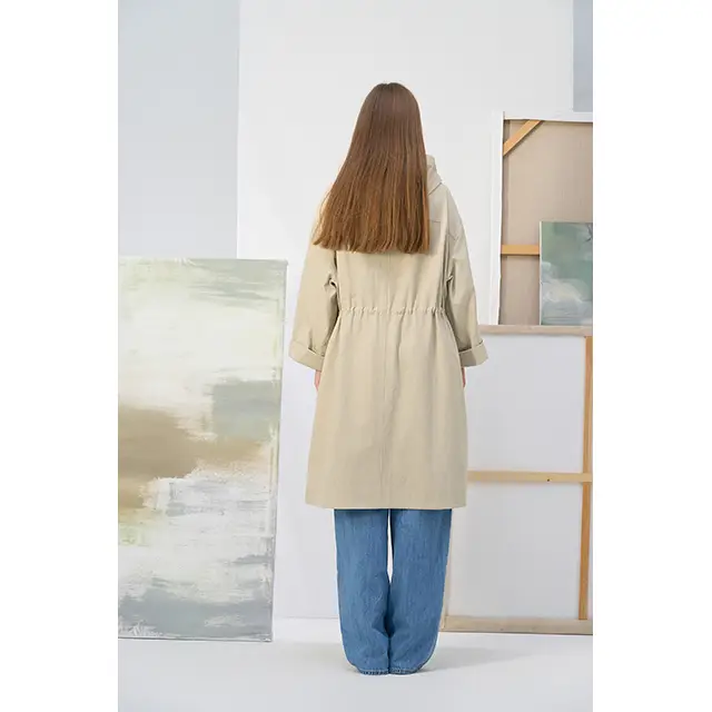 Long Trench Coat with Large Pockets and Color-Crossed Collar
